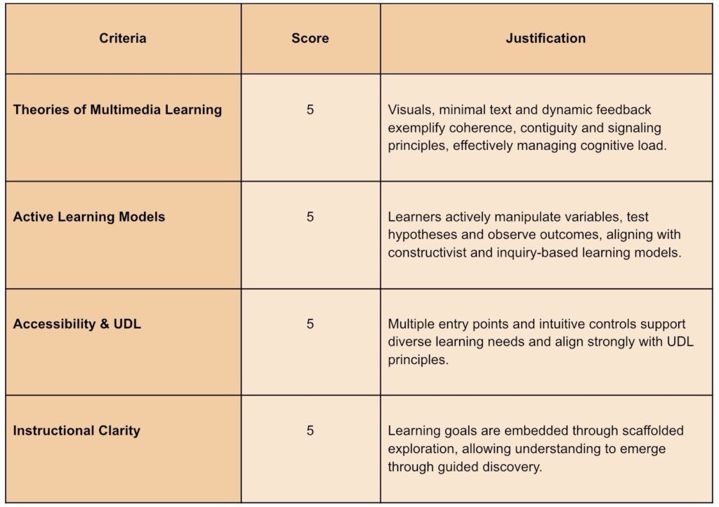 This resource represents excellent practice in multimedia instructional design by seamlessly integrating theory, accessibility and active learning into a cohesive learner-centered experience.